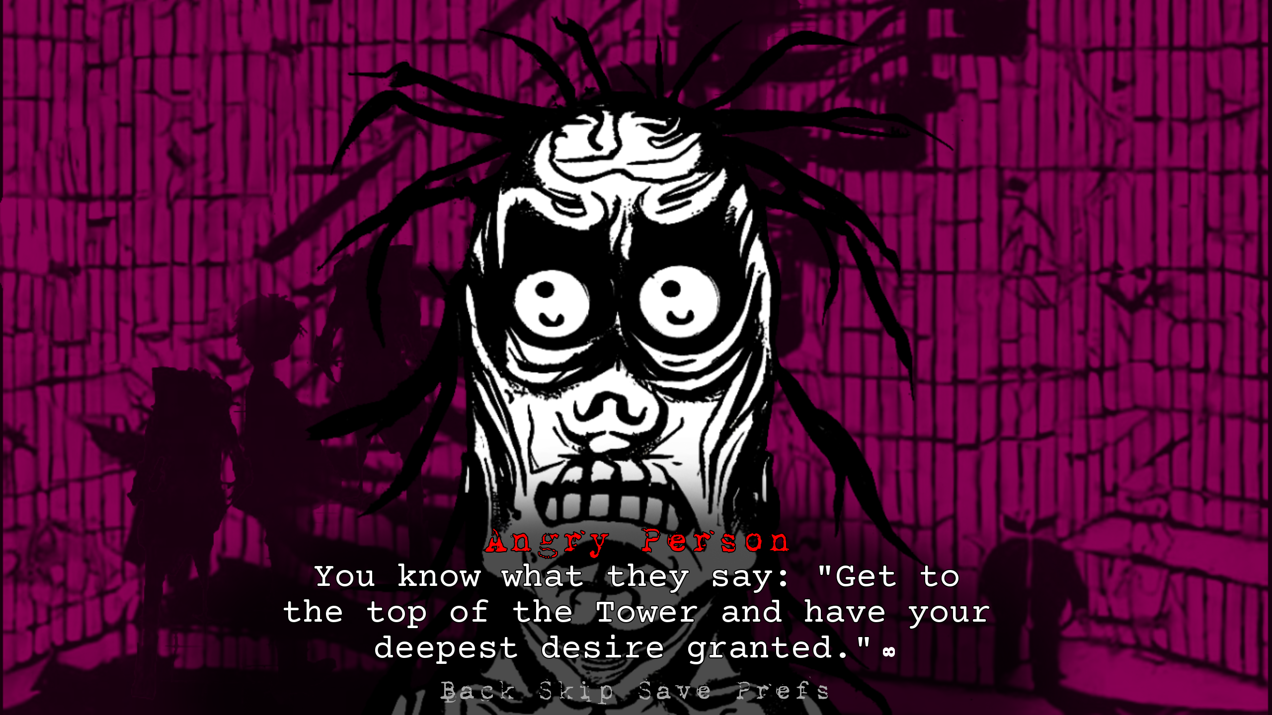 Description: Artifact #0808-2018-a appears to be a visual novel titled The Tower developed by Dr. [REDACTED]. It was found in Dr. [REDACTED]'s quarters, where Dr. [REDACTED] was last reported to have been seen on 07/08/2018.