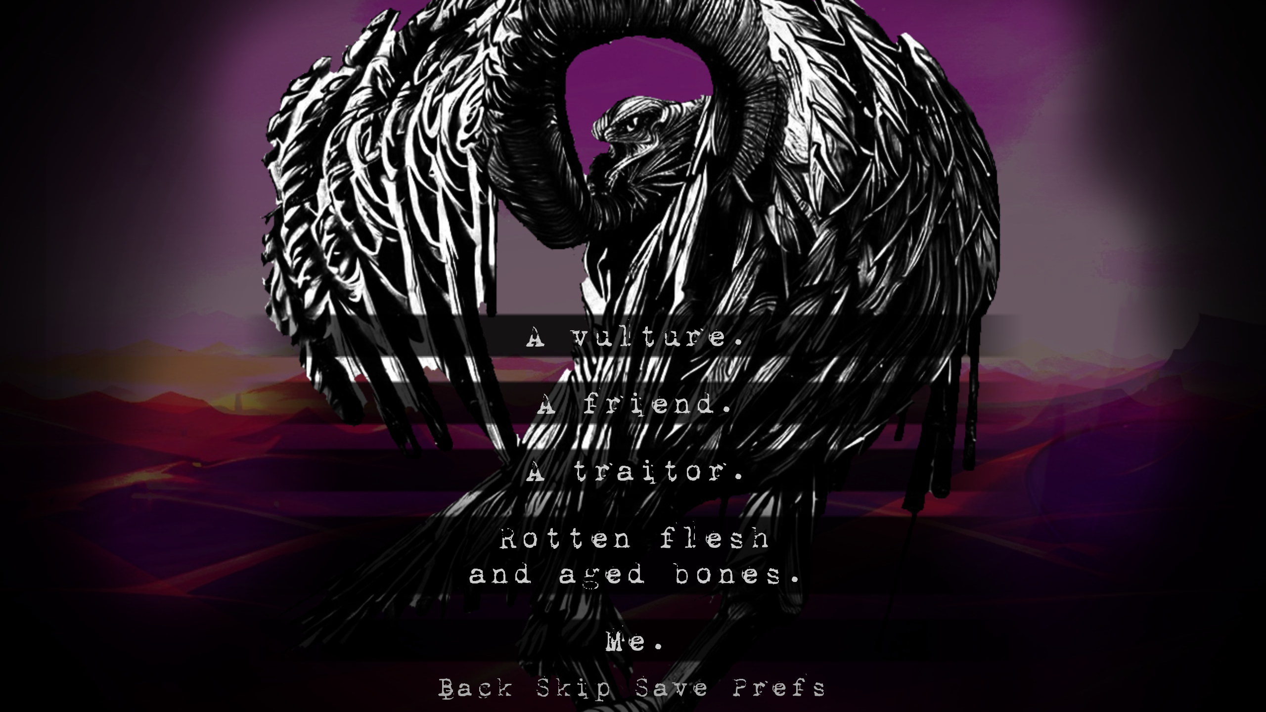 3. Other symbolism/metaphors/literary devices: numbers, player name (changing across plays), characters (e.g., the vulture), text font, etc.